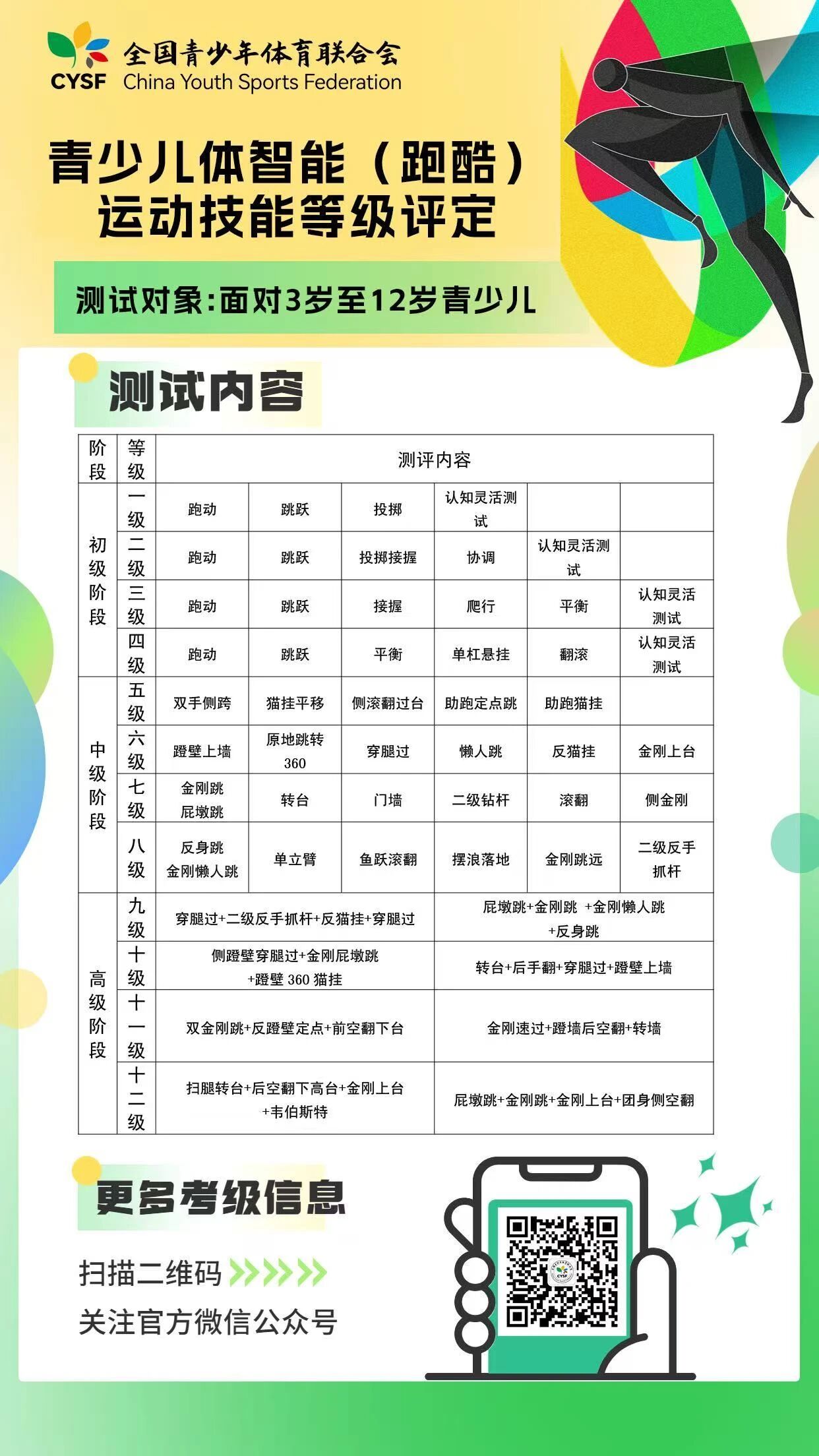 青少儿体智能(跑酷)运动技能等级评定测试内容