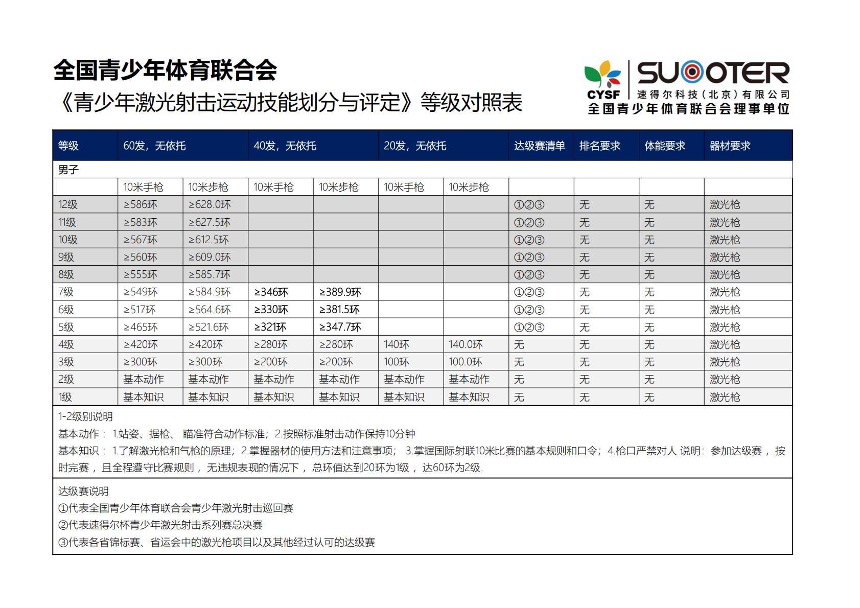 青少年激光射击运动技能等级评定测试内容